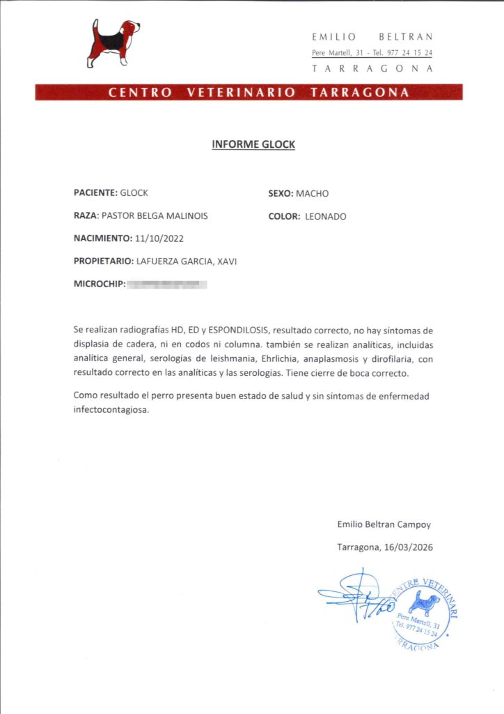Nota: Els gossos es lliuren amb cartilla veterinària, les vacunes corresponents a la seva edat, garantia sanitària i microxip incorporat.